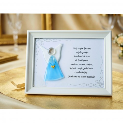 | Tehnika | Okvir drvo, unutrašnjost staklo i kolaž. |